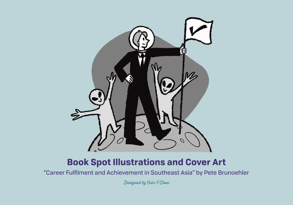 Cover design for Career Fulfilment and Achievement in Southeast Asia by Pete Brunoehler, along with 4 space-themed spot illustrations to accompany the chapters.