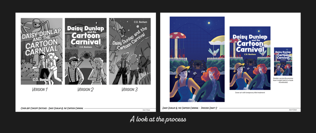 Designed the cover artwork and layout for C.O. Bonham’s whimsical story, Daisy Dunlap and the Cartoon Carnival.